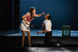 Nikola Diskic sieht aus der Ferne ein bisschen wie Sting aus und ist in seinem Rollendebüt stimmlich so kultiviert wie in den geschmeidigen Bewegungen. Sein Diener Leporello, Patrick Zielke, flankiert ihn als gutmütiger Purzel mit Pudelmütze. Leporellos Leporello zur kernig vorgetragenen Frauen-Sammlungs-Arie: Dessous. Agil auch die Frauen. Estelle Kruger als Donna Anna, Ludovica Bello als Donna Elvira und Amelia Scicolone als Zerlina bilden ein farblich abwechslungsreiches Sopranistinnentrio. Für all das gab es großen Apllaus.